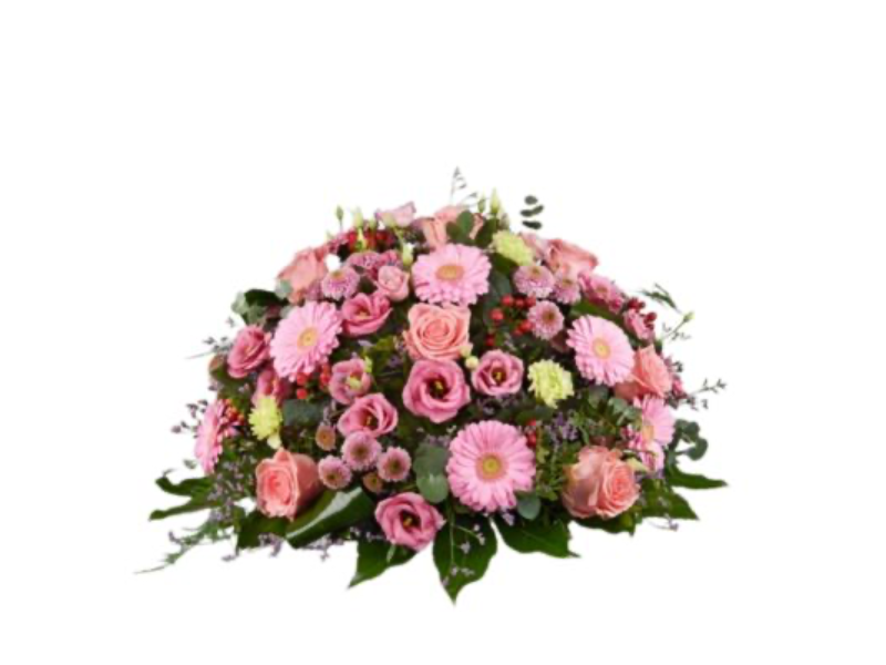 Dit sierlijke rouwstuk met roze gemengde bloemen is een prachtig bloemstuk om de laatste eer te bewijzen.