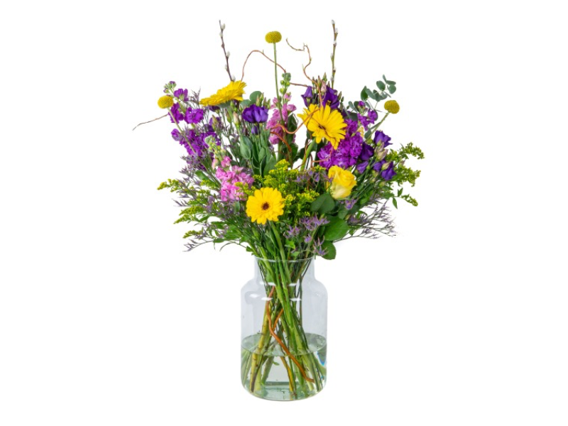 Gele bloemen, speelse stelen en een frisse uitstraling maken dit boeket ideaal voor het voorjaar. Het is een oppepper voor elke ruimte en een instant blijmaker voor wie hem ontvangt.