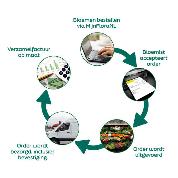 Via ons online bestelsysteem MijnFloraNL bestel je eenvoudig bloemen voor jouw bedrijf, collega’s of relaties. Laat het bloemwerk bezorgen op een locatie naar keuze of haal het af in onze winkel. Met meerdere bestellers zie je overzichtelijk wie welke bestelling heeft geplaatst. Via de track & trace houd je gemakkelijk de status van bestellingen bij. Facturen kunnen worden gespecificeerd en gesplitst op kostenplaats, besteller, inkoop- of PO-nummer, afdeling of per order. OCI-koppelingen met jouw persoonlijke inkoopprogramma zijn ook mogelijk.